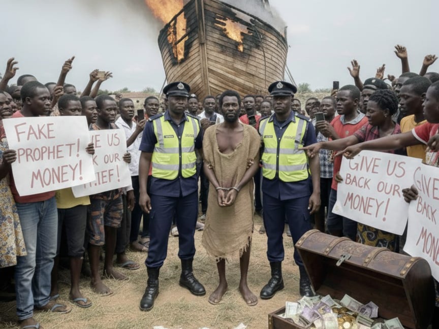 Miles de seguidores estafados queman las "arcas de salvación" mientras el líder es arrestado por las autoridades.