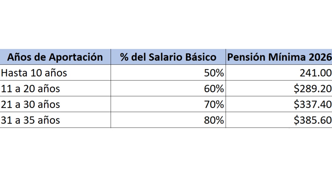 Dado que la pensión mínima en Ecuador está indexada al SBU según los años de aportación, el incremento del salario eleva automáticamente el piso de las jubilaciones: