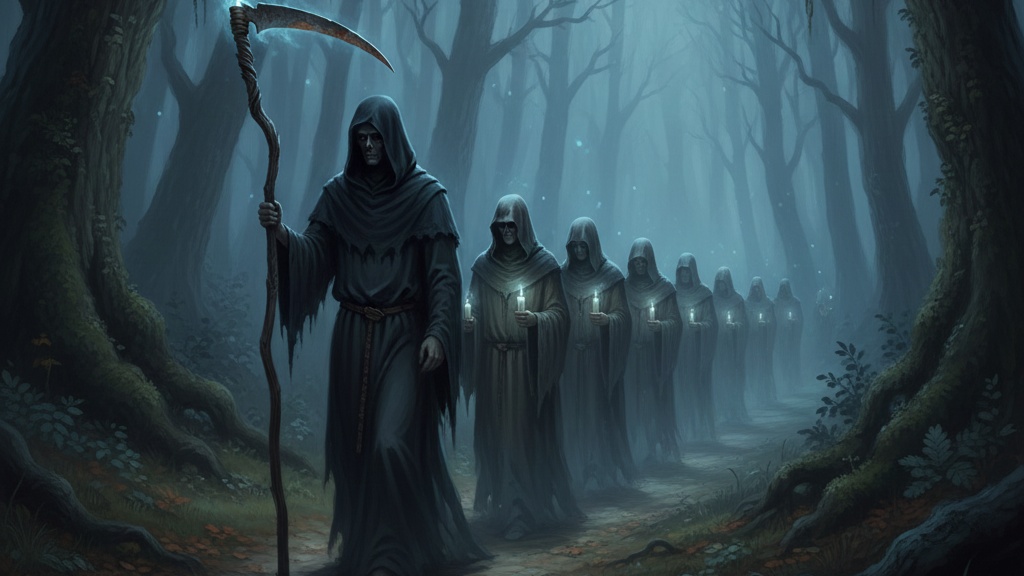 También se dice que la procesión puede aparecer para reclamar el alma de alguien que ya ha sido señalado o para advertir de la muerte inminente de un conocido. Su función no es matar, sino señalar.